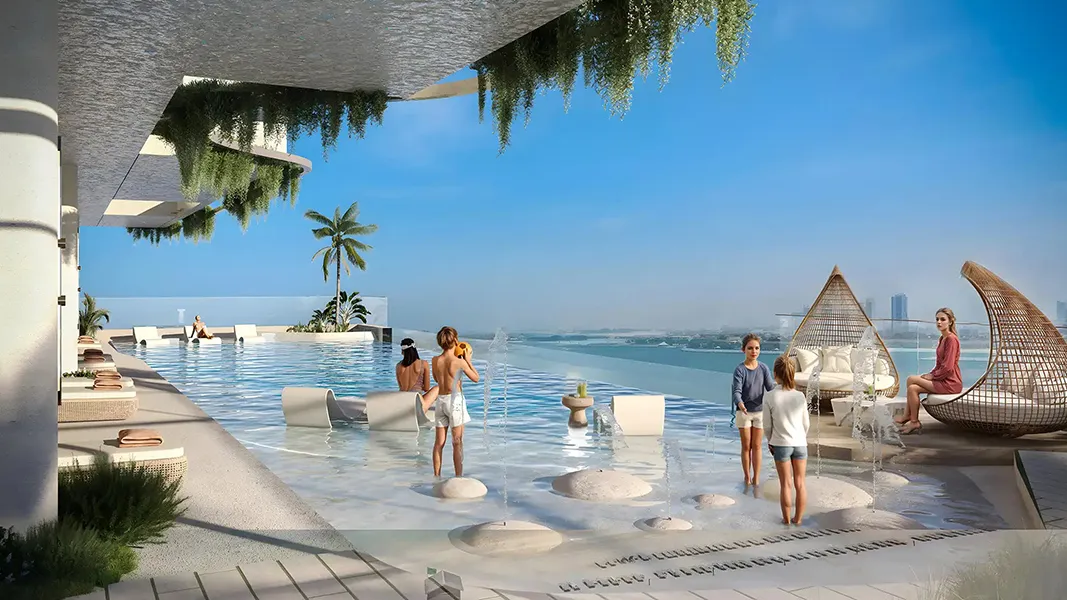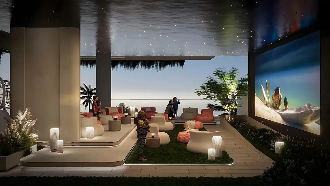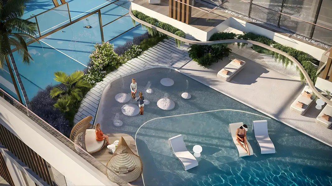 The lifestyle here is one of refined leisure. Residents can unwind by the podium-level beach edge pool that gently slopes into the water, resembling a walk along the shoreline. Rooftop infinity pools and starlit cinemas enhance evenings with luxury and charm, while wellness sanctuaries and Technogym fitness centers offer rejuvenation. Families will appreciate the splash pads, playgrounds, and outdoor courts, ensuring entertainment and relaxation for all ages. Allegro Park creates a perfect balance between recreation and repose.