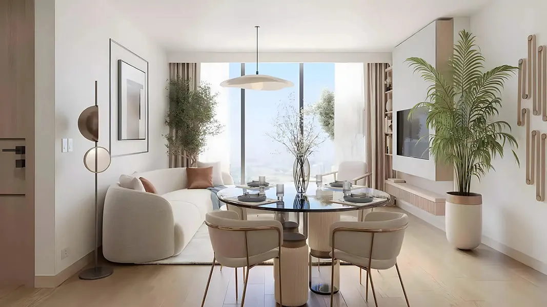 Studios start from AED 732,000, 1-bedroom apartments from AED 1,050,000, and 2-bedroom units from AED 1,938,000.