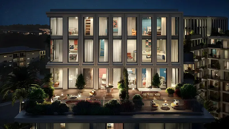 - Design Concept: Architectural minimalism with modular façades, panoramic glazing & cascading terraces