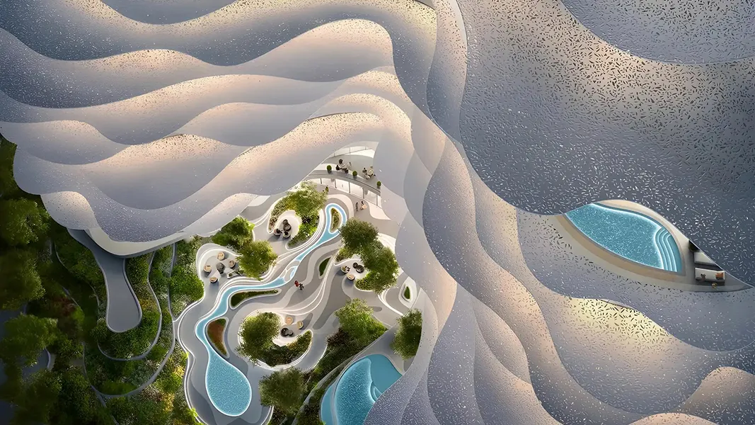 The architectural vision introduces a sculptural presence to Saadiyat Island, shaped by fluid forms and balanced proportions. Inspired by the natural movement of the coastline, the buildings are composed to feel light and expressive, blending seamlessly with the surrounding landscape while establishing a strong visual identity.
