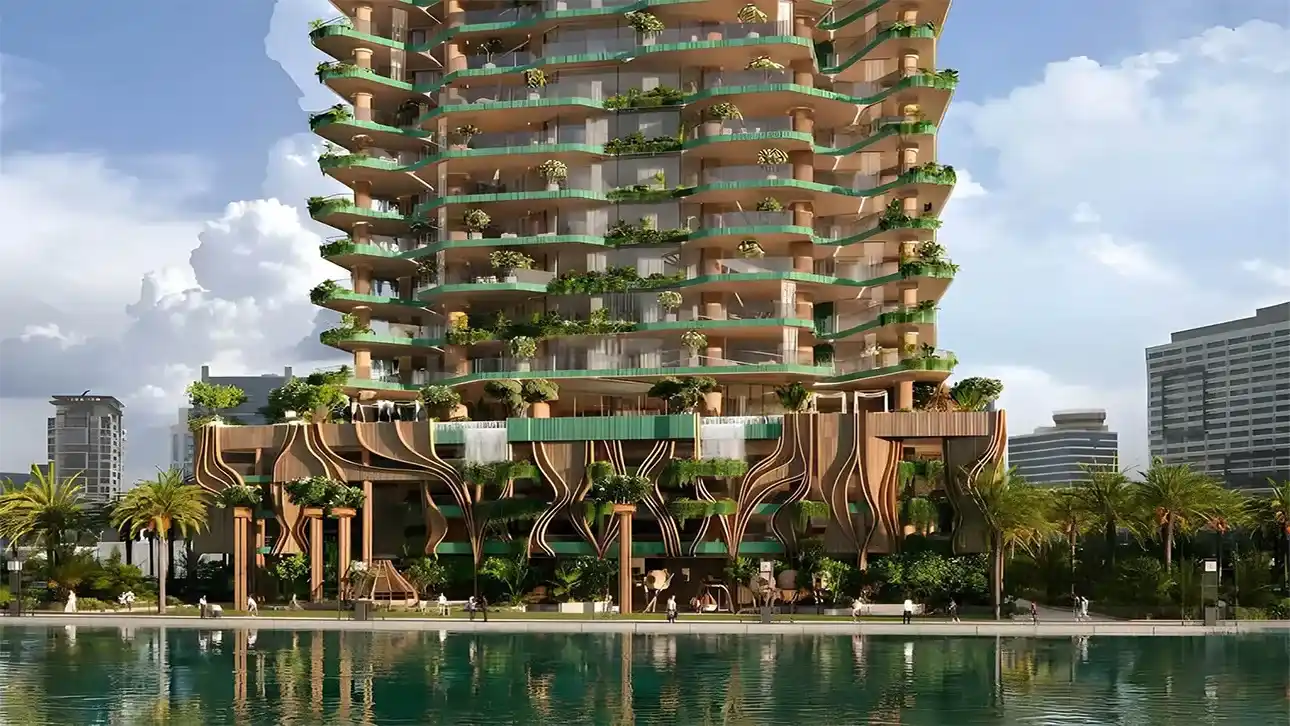 Eywa 2 by R.Evolution rises gracefully over the Dubai Water Canal in Business Bay — a symbol of “wild luxury” that merges nature with modern innovation. Designed as a vertical forest, this 28-storey architectural masterpiece draws inspiration from the Hallelujah Mountains of *Avatar* and the banyan tree, reflecting harmony between humanity and nature. With only 65 ultra-luxurious, fully furnished residences, it promises exclusivity, wellness, and a sense of belonging amid the city’s vibrant skyline.