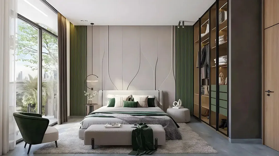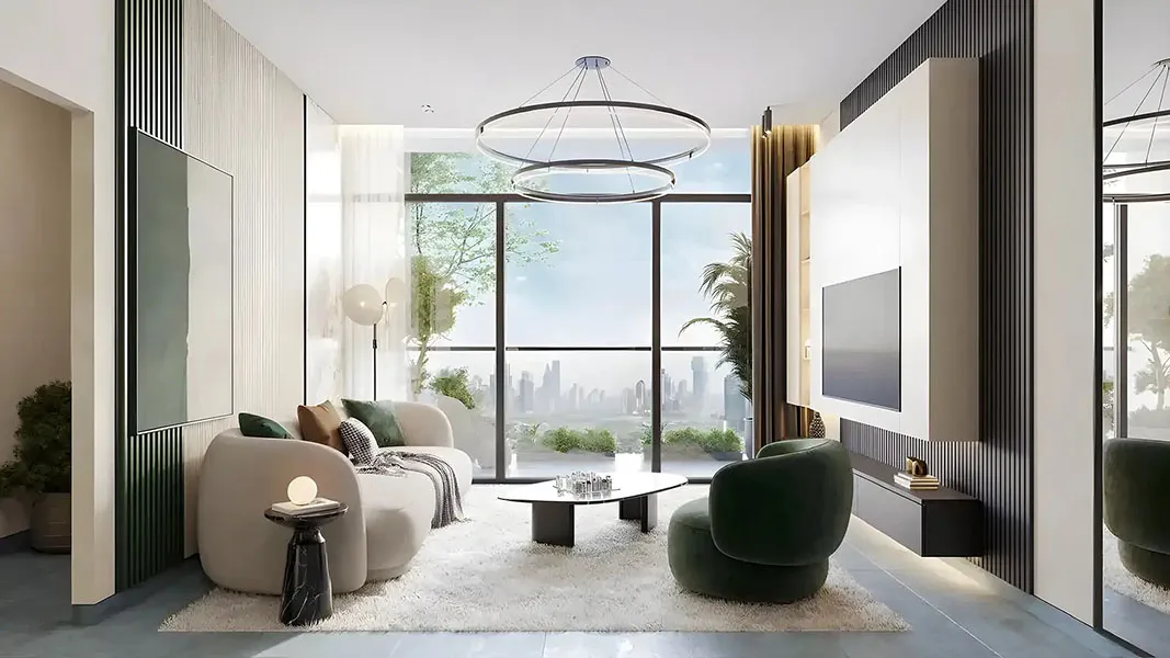 Each apartment arrives fully furnished, allowing residents to step directly into a ready-to-live environment. Interiors are shaped by modern kitchens, built-in appliances, and smart space planning that maximizes usability. Neutral palettes, textured wall finishes, and carefully selected lighting create an atmosphere that feels calm yet contemporary, supporting both relaxation and everyday routines.