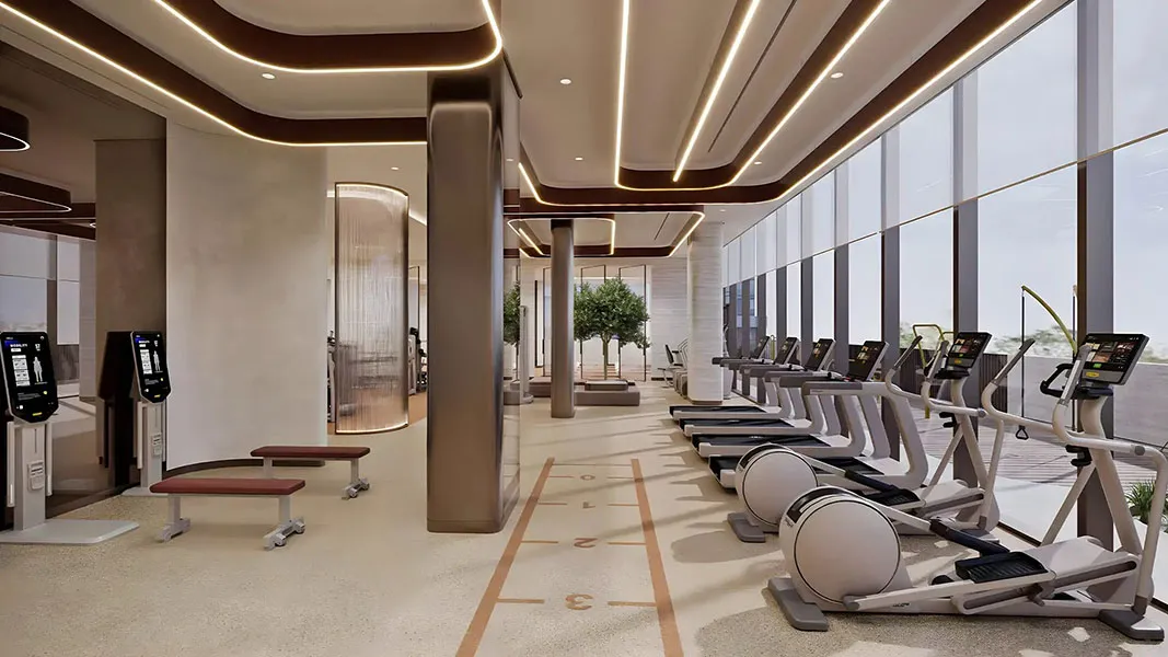 Wellness is a defining element of the project. Residents have access to a state-of-the-art gym, outdoor fitness deck, spa and sauna, and a 25-meter swimming pool. A sky infinity pool and indoor padel court further elevate the active lifestyle experience within the tower.