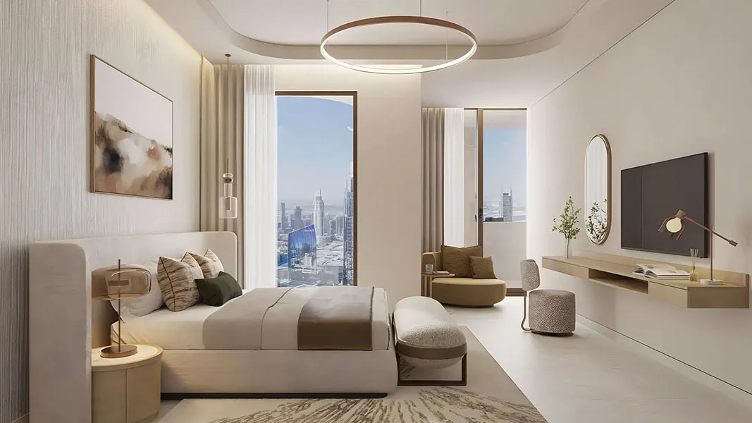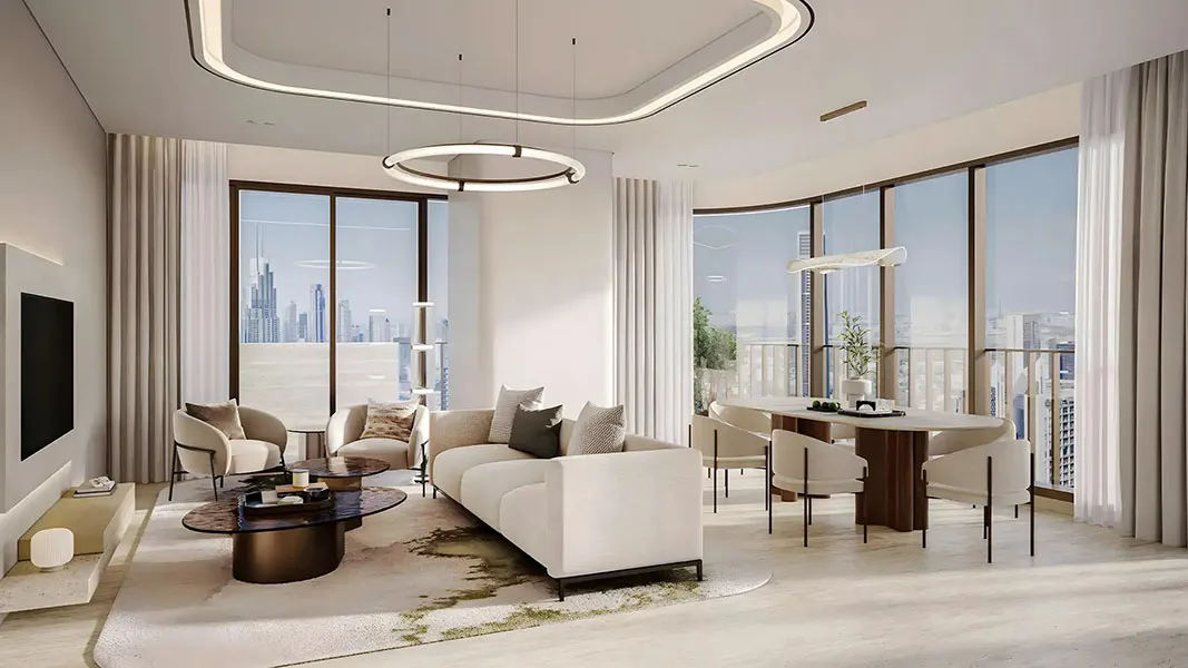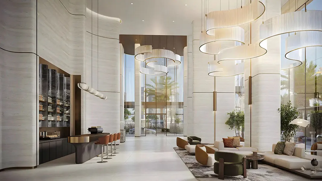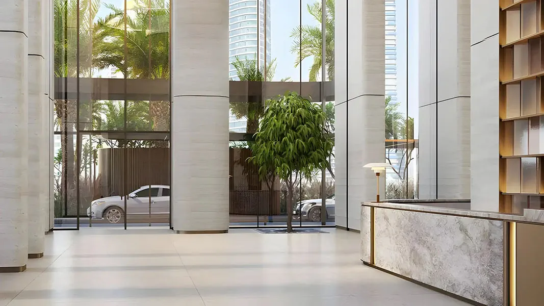 Architecturally, the tower is defined by a stone-inspired monolithic design shaped by nine evolving geometric modules. This sculptural form creates generous volumes, expansive views, and refined living spaces, positioning Nine Collective as a distinctive high-rise destination in the heart of Dubai.