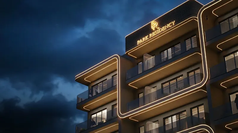 Park Residency combines modern design with everyday practicality. The building exterior features sleek lines, glass balconies, and refined lighting accents that enhance its presence in the community.