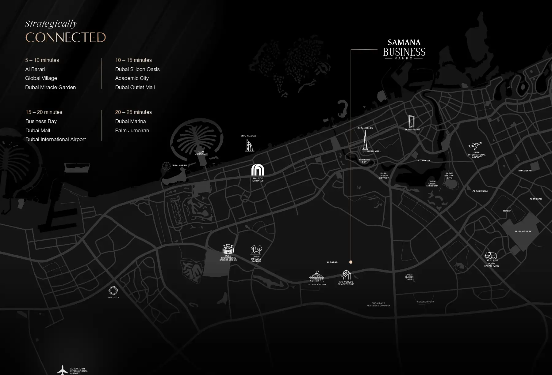 - Connectivity: Direct access to Sheikh Mohammed bin Zayed Road; excellent links to major districts